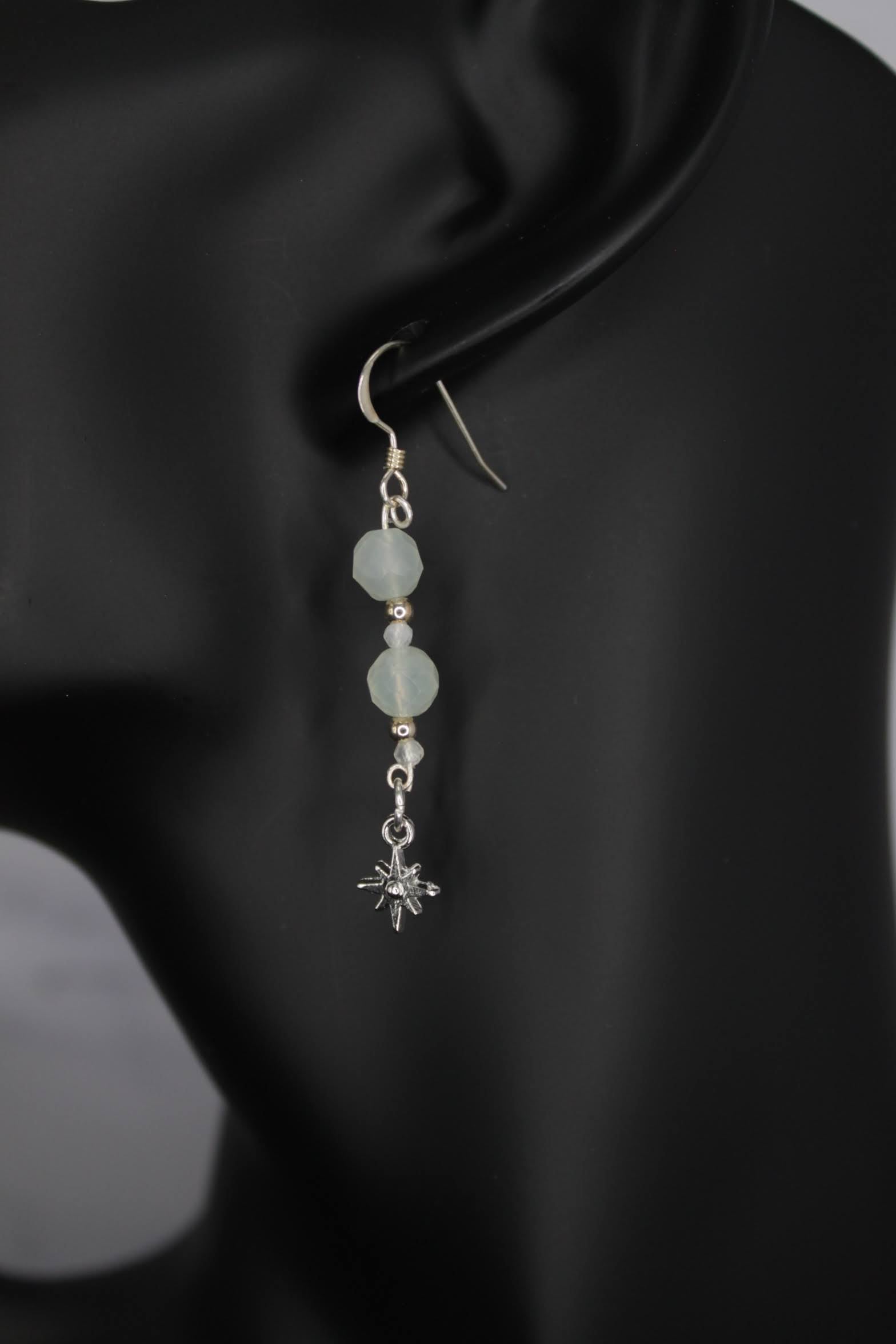 Like the Greek Titan holding the heavens and skies, the star charms hold several stunning gemstones. Olive green jade, moonstone, and silver beads are carefully stacked in a unique pattern that embodies the heavens and skies.